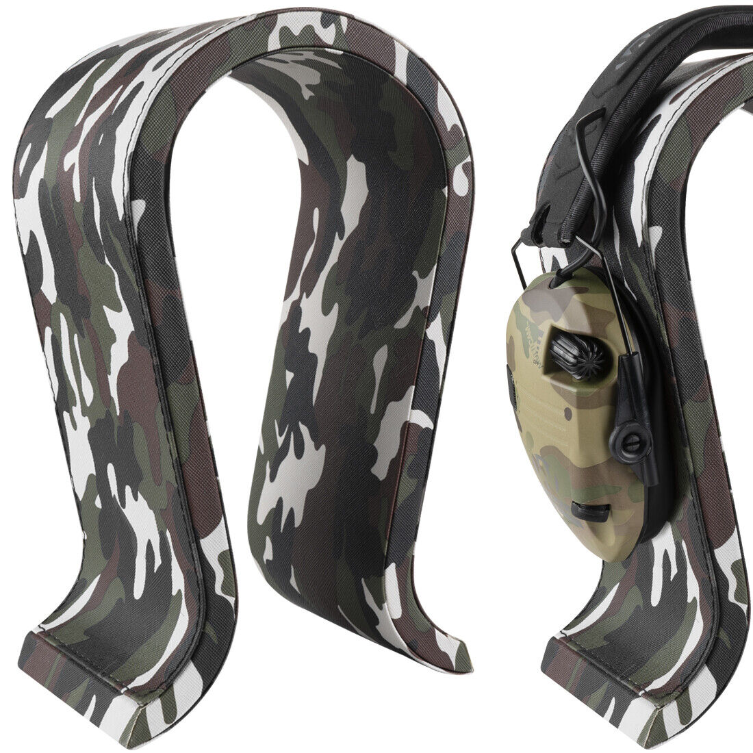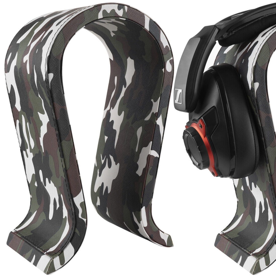 Geekria Vegan Leather Wooden Omega Headphone Stand Gaming Headset (Camo)