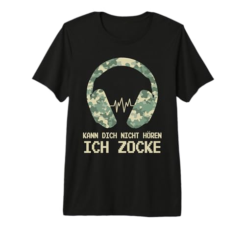 Kann Dich Nicht hören, ich zocke Gamer Headset camo Premium T-Shirt