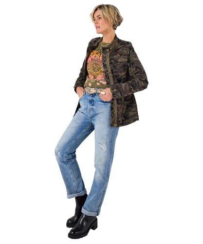 Joe Browns Women's BOUTIQUE Embroidered Back Camo Jacket, Relaxed, Green, UK 8