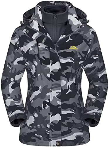 TACVASEN Women's Waterproof Fleece Jacket Outdoor 3 IN 1 Ladies Coat Skiing Snow Hooded Jackets Camo Black