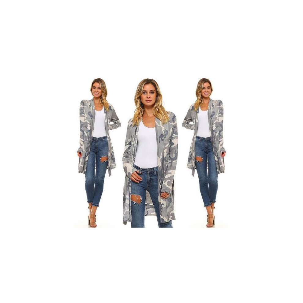 2017 Autumn Womens Casual Cardigan Loose Sweater Camo Long Sleeve Outwear Jacket Coat Tops Size S-XL