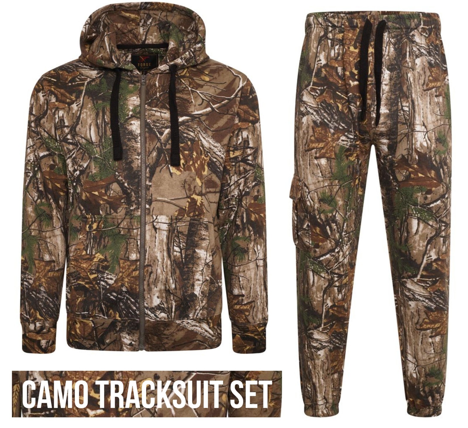 Mens Jungle Camouflage Fishing Hunting Zip Hoodie Jacket Tracksuit Plus Sizes (L, Camo Tracksuit)