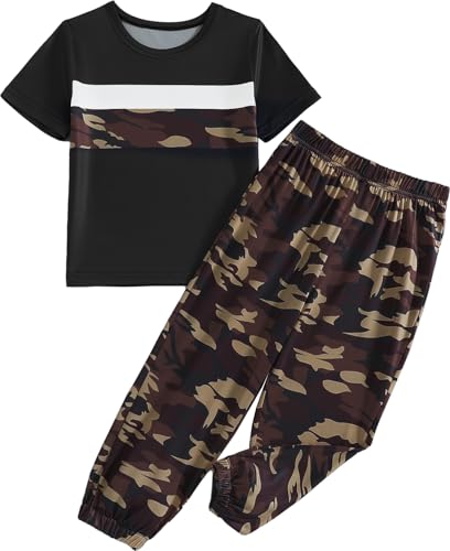 Xumplo Toddler Boys 2 Piece Outfits Kids Short Sleeve T-shirt Tops and Camo Trousers Clothes Set Boys Tracksuit Clothing 4-5 Years