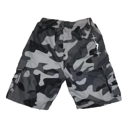 Crosshatch Mens Shorts Camo Combat Cargo Army Camouflage Gimster Summer Jeans Pants (Grey, 36)