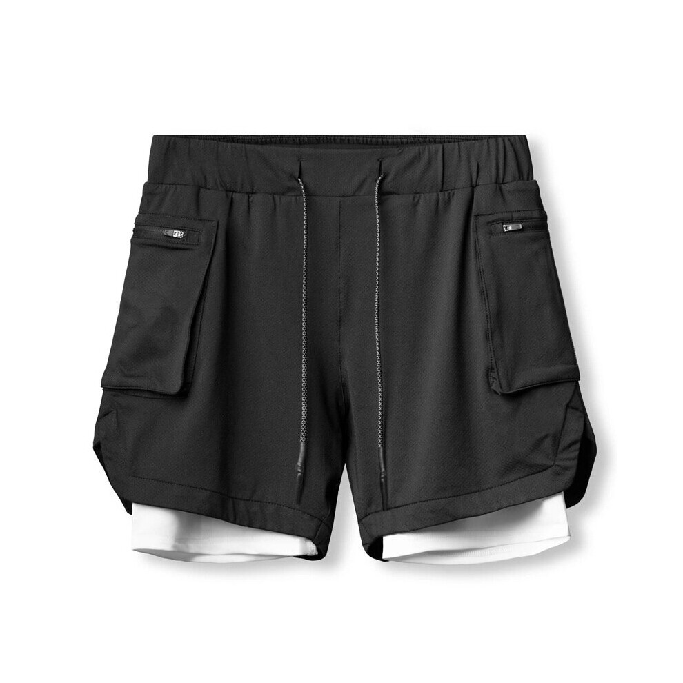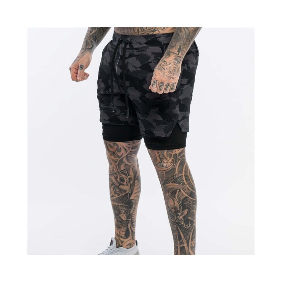 Camouflage Double-Deck Shorts Mens Fitness Bodybuilding Breathable Quick Drying Shorts Gyms Casual Joggers Shorts Men