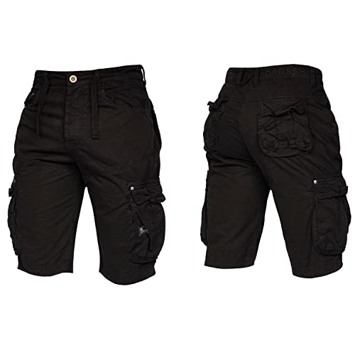 Crosshatch New Mens Army Camouflage Knee Length Combat Cargo Jeans Holiday Summer Shorts by Jeanbase Black 36