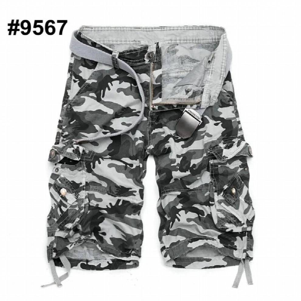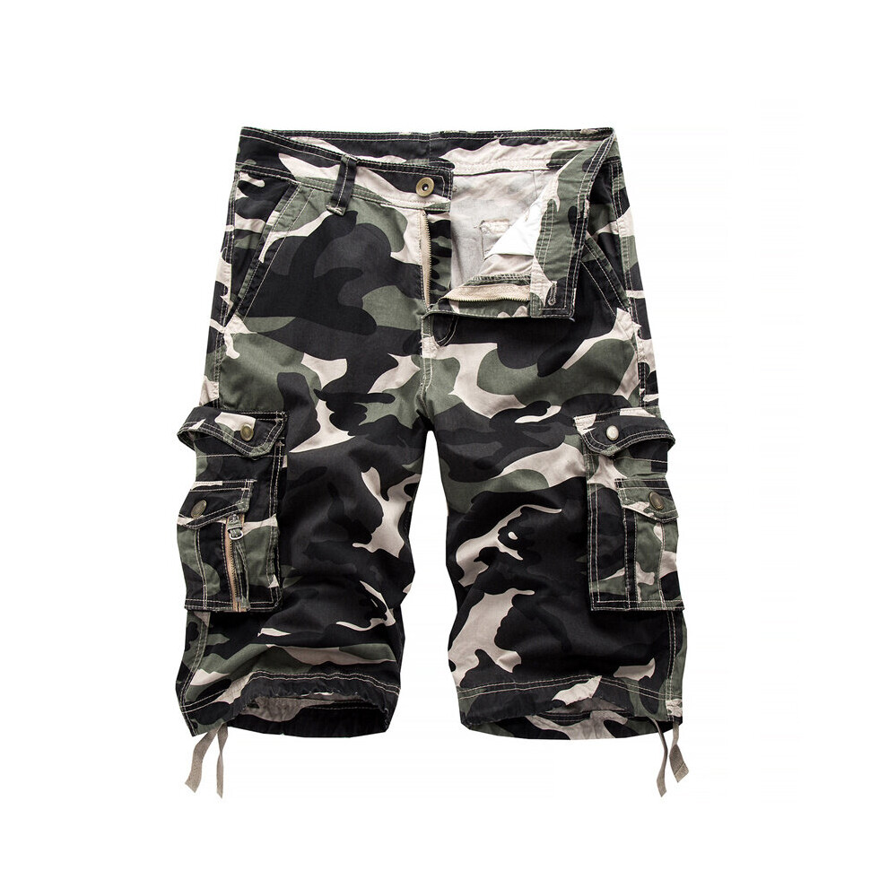 BLEXX Mens Cargo Shorts Summer Military Camo Short Pants Men's Hiking Shorts Cotton Relaxed Fit Camouflage Camo Work Shorts With Multi-Pockets (Color : White1, Size : 29)