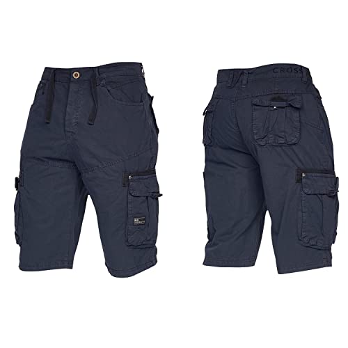 Crosshatch New Mens Army Camouflage Knee Length Combat Cargo Jeans Holiday Summer Shorts by Jeanbase Navy 34