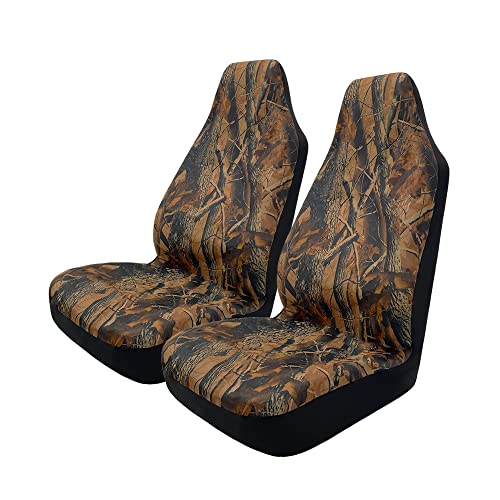 TOYOUN Camo Universal Front Car Seat Covers Waterproof Highback Bucket Design -Fit Most Cars, Trucks, SUVS, Vans 2 PCS Auto Fabric Covers Camouflage Forest Pattern Car Seat Protector