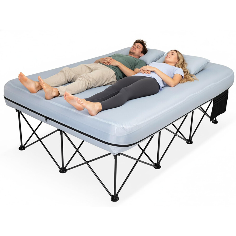 FUNDANGO Double Camping Bed with Inflatable Air Mattress Folding 2 Person Camp Beds Camping Cot Portable AirBed with Pump Side Table Sleeping Cot
