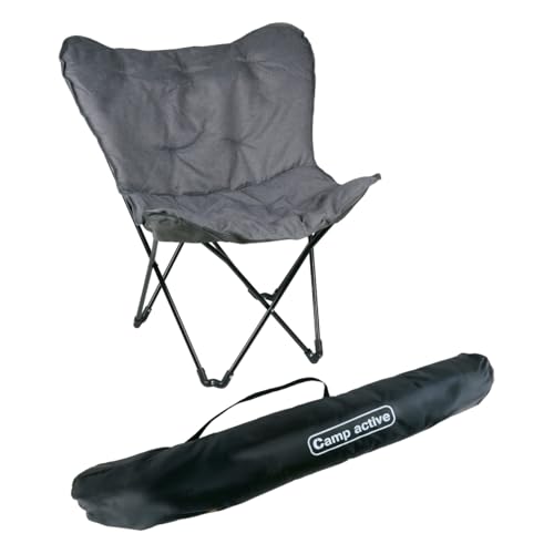 Camp active Butterfly Chair Foldable - Butterfly Chair Including Carry Bag - Camping Chair with Comfortable Seat - Lightweight Folding Chair - 70 x 60 x 90 cm - Grey