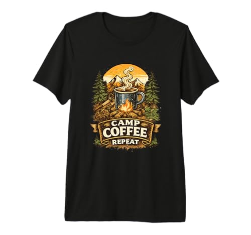 Camp Coffee Repeat Funny Camping Lover Outdoor Adventure Premium T-Shirt