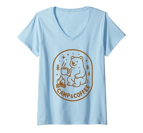 Womens Camp and Coffee Bear Camping Coffee Design V-Neck T-Shirt