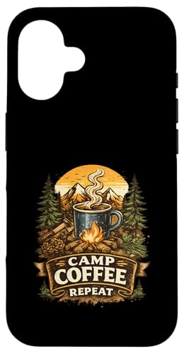 Camp Coffee Repeat Funny Camping Lover Outdoor Adventure Case for iPhone 16