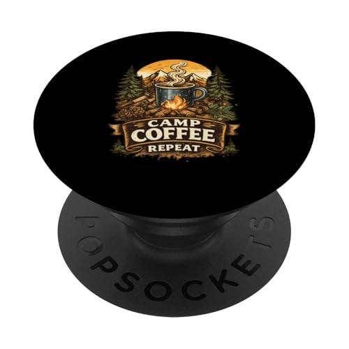 Camp Coffee Repeat Funny Camping Lover Outdoor Adventure PopSockets Adhesive PopGrip