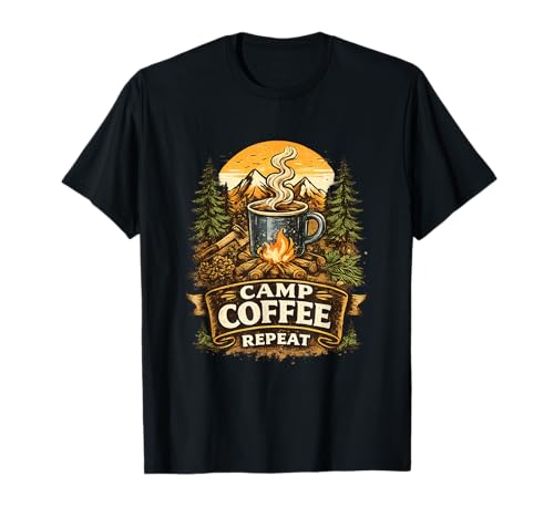 Camp Coffee Repeat Funny Camping Lover Outdoor Adventure T-Shirt