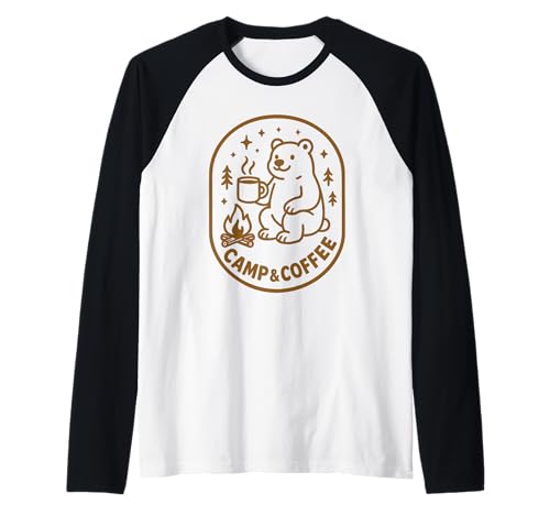 Camp and Coffee Bear Camping Coffee Design Raglan Baseball Tee