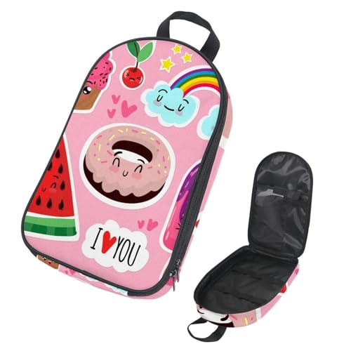 Eslifey Camping Travel Cooking Utensils Organizer Bag, Ice Creams and Cartoon Cake Strawberry Heart Dots Pattern Portable Storage Bag for BBQ Camp Cookware Kitchen Kit