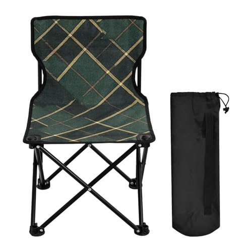 GuoChe Green Buffalo Plaid Check Tartan Scotland Compact Camp Chair Ice Fishing Chair with Back with Carrying Bag for Outside