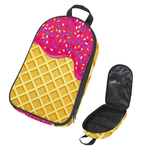Eslifey Camping Travel Cooking Utensils Organizer Bag, Strawberry Ice Cream Melted and Topping on Waffle Pattern Portable Storage Bag for BBQ Camp Cookware Kitchen Kit
