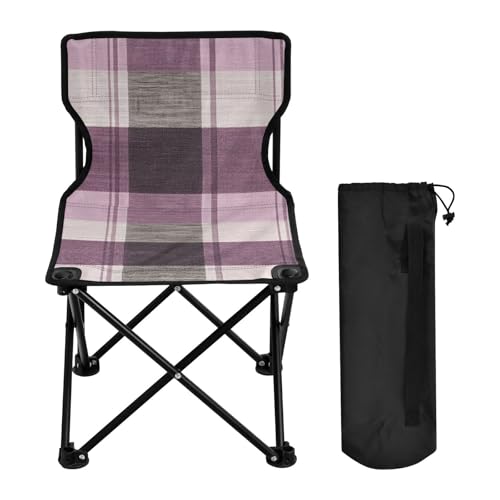GuoChe Lavenderblush Buffalo Plaid Check Tartan Scotland Portable Camp Chair Ice Fishing Chair with Back with Carrying Bag for Travel