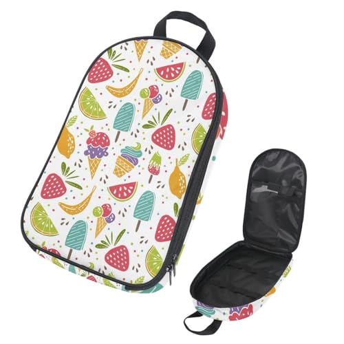 Eslifey Camping Travel Cooking Utensils Organizer Bag, Sweet Desserts Ice Cream Fruit Colorful Pattern Portable Storage Bag for BBQ Camp Cookware Kitchen Kit