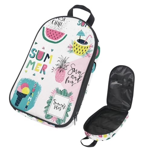 Eslifey Camping Travel Cooking Utensils Organizer Bag, Flamingo Watermelon Ice Cream Pineapple Palm Tropic Sun Illustration Portable Storage Bag for BBQ Camp Cookware Kitchen Kit
