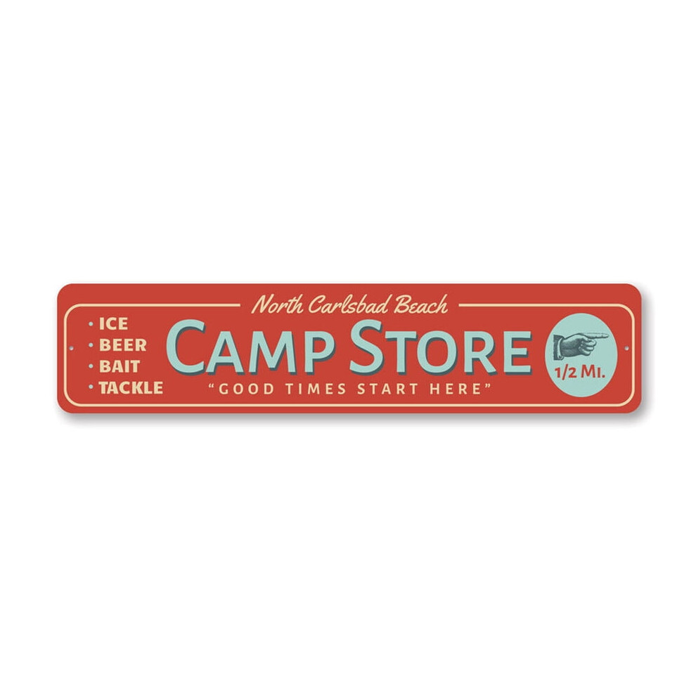 (Aluminum metal) Beach Camp Store Sign Ice Beer Bait & Tackle Sign Fishing & Camping Metal Sign Size: 4 x 16 Inch