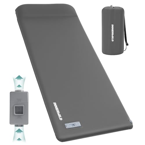 INNERWILD Camping Sleeping Pad with Electric Pump, 3.15" Thick Self Inflating Memory Foam Camping Mattress Pad with Pillow, 4-Season Portable Camp Sleeping Mat for Travel,Car,Tent,Home-Grey