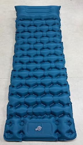 Camping Mat Inflatable Sleeping Pad: Ultra Thick Single Self Inflating Air Mattress - Lightweight Compact Wide with Pillow Camp Mats for Backpacking Travel Trekking - Blue