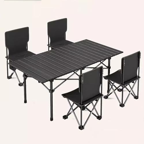zxhrybh Outdoor Folding Table, Portable Aluminum Lightweight Camping Table, Camp Table for Outdoor Cooking, Camping, Picnic, Camp, Boat, Travel(Black,47.2in/120cm table+4 chairs)