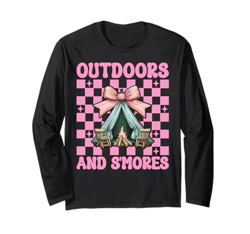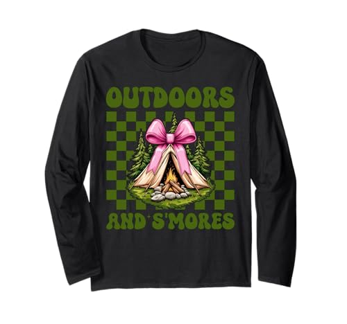 Camping Girl Mom Camper Camp Tent Outdoors and S'Mores Long Sleeve T-Shirt