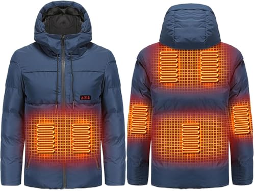 Heated Jacket 7 Zone Heating Hood Windproof Thermal Electric Coat Outdoor Camping (Battery Not Included)(Bleu,XXL)