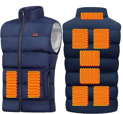 Heated Vest Smart Electric Heated Vest Upgraded 11 Zones Lightweight Heated Jacket Outdoor Camping (Battery Not Included)(Bleu,2XL(67.5-75kg))