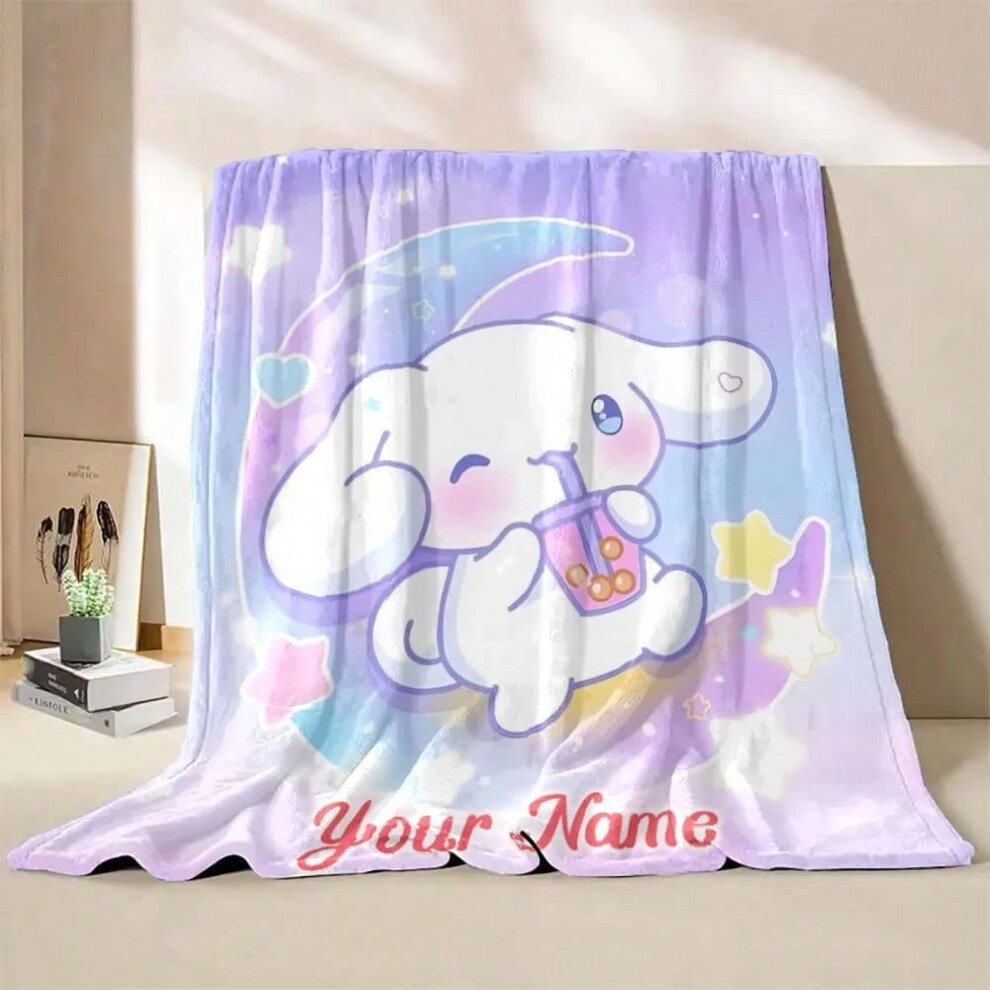 (Style A, 130x150cm(51x59in)) 1PC Custom Name Blanket Sanrio Cinnamoroll Print Suitable for Sofa, Bed, Travel, Camping, Office Chair Bed Blanket Holid