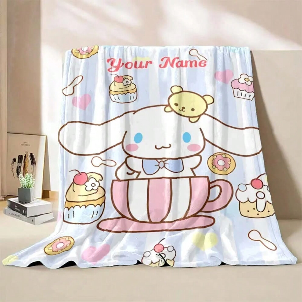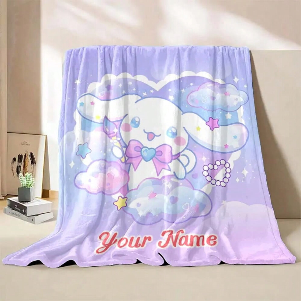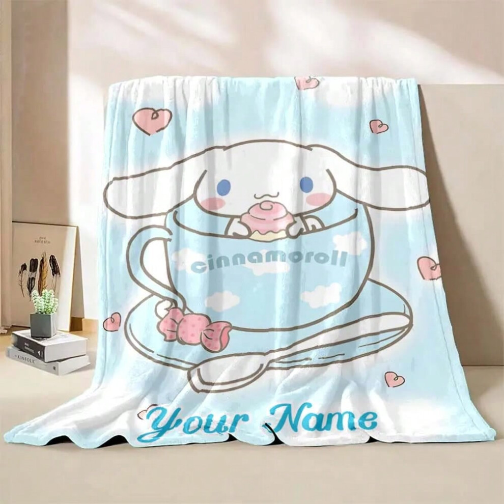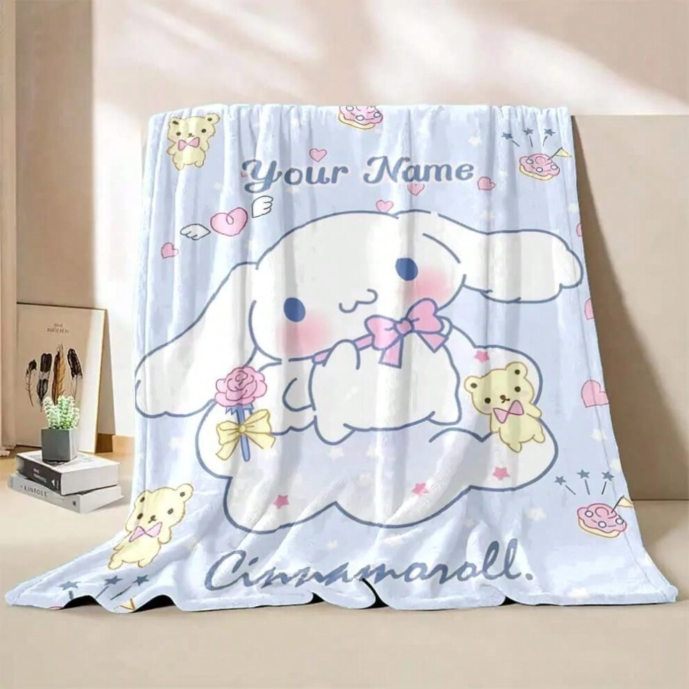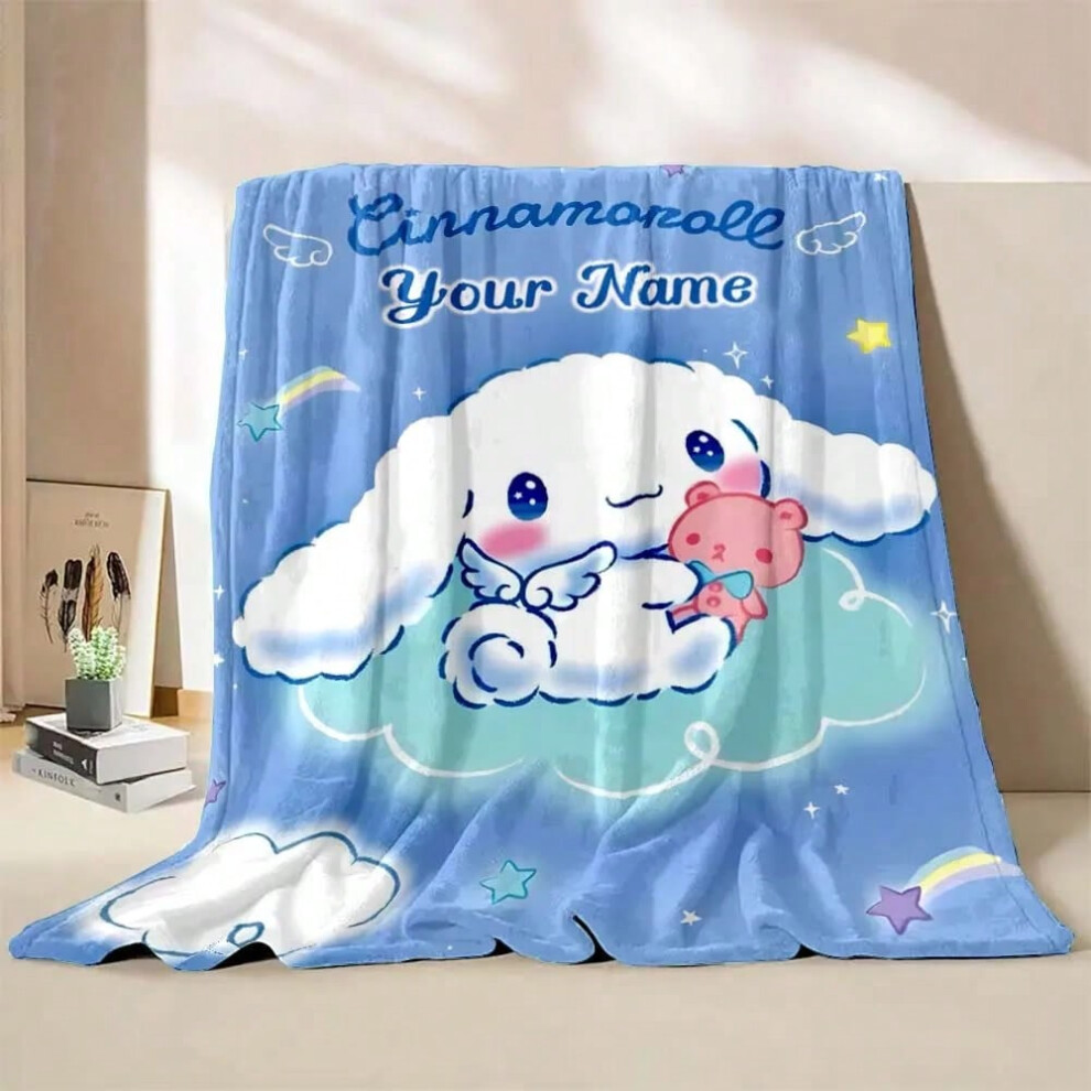 (Style A, 100x150cm(39x59in)) 1PC Custom Name Blanket Sanrio Cinnamoroll Print Suitable for Sofa, Bed, Travel, Camping, Office Chair Bed Blanket Holid