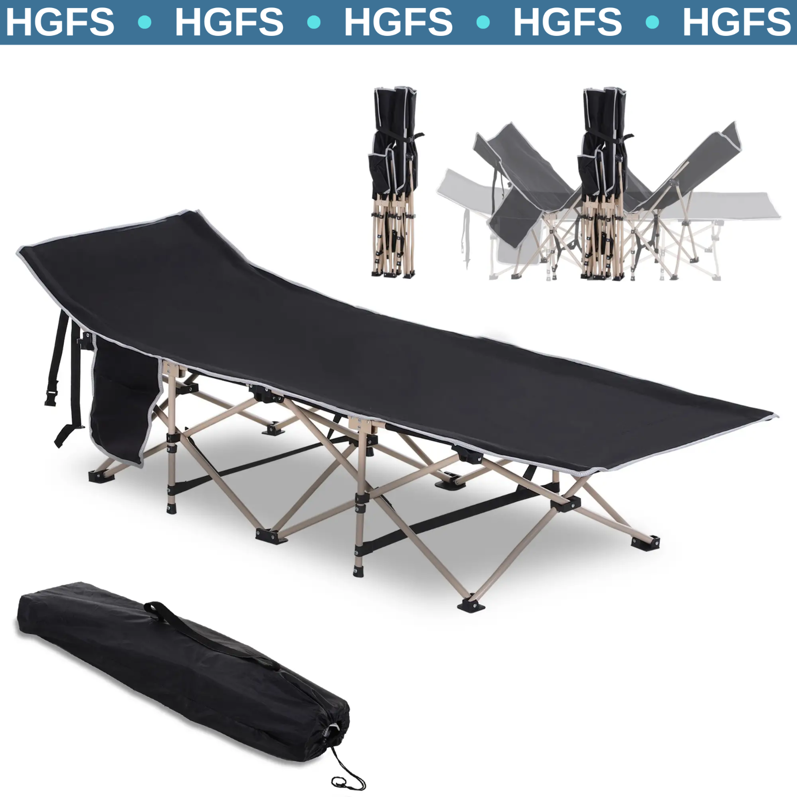 Camping Bed Foldable Military Sleeping Cot Stell Frame Side Pocket Black HGFS