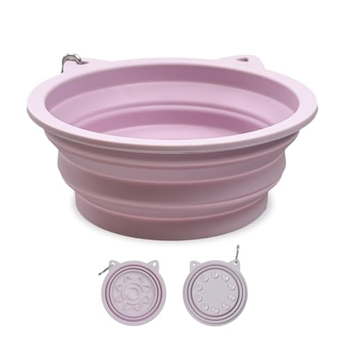 ALCXAZS Easy to Store Collapsible Camping Bowls Silicone Folding Bowl Dishware Food Grade Silicone Camping Bowl with Lid Travel Collapsible for Travel, Blue, 900ml