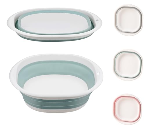 REDCAMP 9L Collapsible Washing up Bowl with Handles, 2 Pack Foldable Camping Bowl Multipurpose Outdoor Basin, Portable Folding Sink for Camping Hiking Travel Home, Grey & Green
