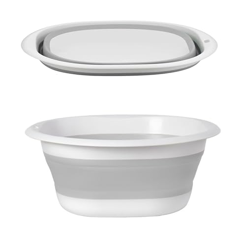 9L Collapsible Washing Up Bowl - Folding Hand Wash Basin, Plastic Washing Up Bowl, Retractable Water Storage Basin, Portable Food Storage Camping Bowls, Multipurpose Outdoor Travel Basins (L Grey)