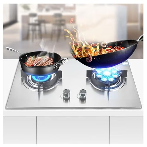 BZJPRFC Gas Stove 2 Burner Gas Stove Portable Gas Stove Tempered Glass Ignition Camping Dual Burner LPG/Natural Gas, 5.2KW (Color : Silver, Size : NG)