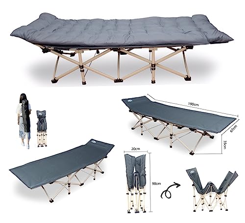 ATORPOK SHOP Camp Beds for Adults with Cushion and Pillow, Portable Travel Camping Cot for Sleeping, Lightweight Tent cot with Carry Bag Supports 450 lbs (Gray)