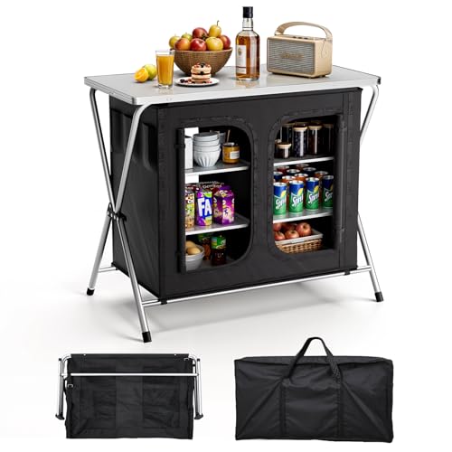 AJJHUUKI Foldable Camping Cupboard with Aluminium Frame