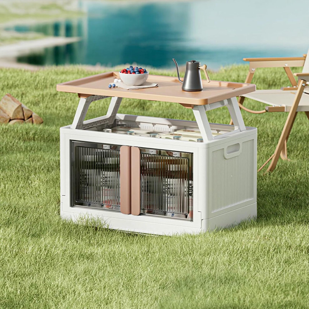 Foldable Storage Crate with Table Top Large Camping Storage Cupboard Collapsible