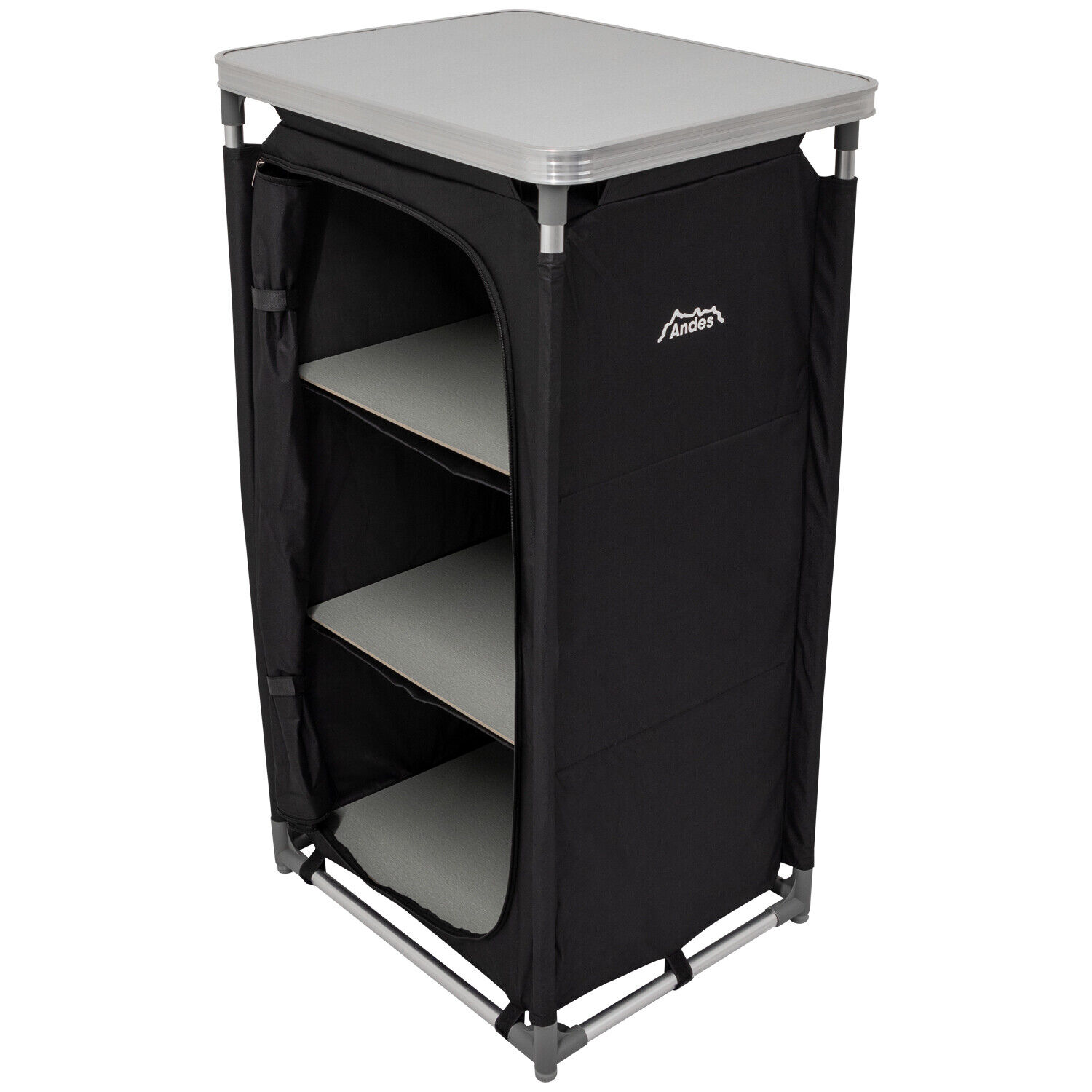Andes Lightweight 3 Shelf Camping Cupboard, Folding Travel Storage Unit + Carry Bag, Black