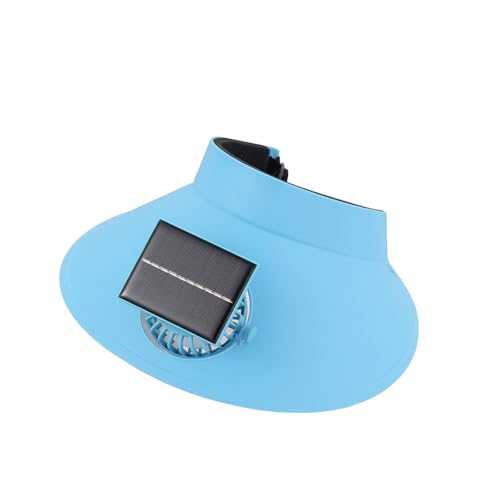 AOOOWER Solar Powered Cooling Fan Hat with USB Charging Function Large Brims Hat for Camping Hiking Travel Essential, Blue, One Size