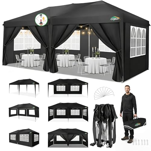 COBIZI Canopy 10x20 Pop Up Canopy with 6 Sidewalls,Waterproof Canopy Outdoor Event Shelter UPF 50+ Gazebo Portable Tents for Parties Beach Camping Wedding Commercial Instant Ez up Canopy 10x20,Black