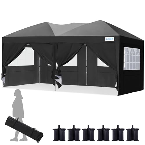 Quictent 3x6m (10x20ft) Pop Up Canopy Gazebo with Church Window Sidewalls, Adjustable Height Event Shelter, Portable Tent for Garden Party, Camping, Black