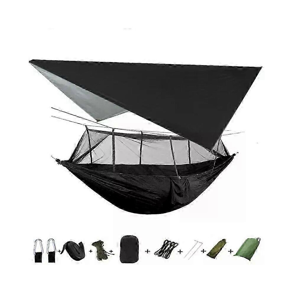 Camping hammock tent with mosquito net tarp and cookware black