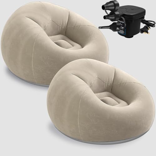 OJMHD 2 Pcs Inflatable Bean Bag Chairs for Camping, Adults’s Blow up Chair, Foldable Lazy Sofa Couch with Electric Air Pump for Reading Living Room Bedroom Gaming Outdoors, Mocha